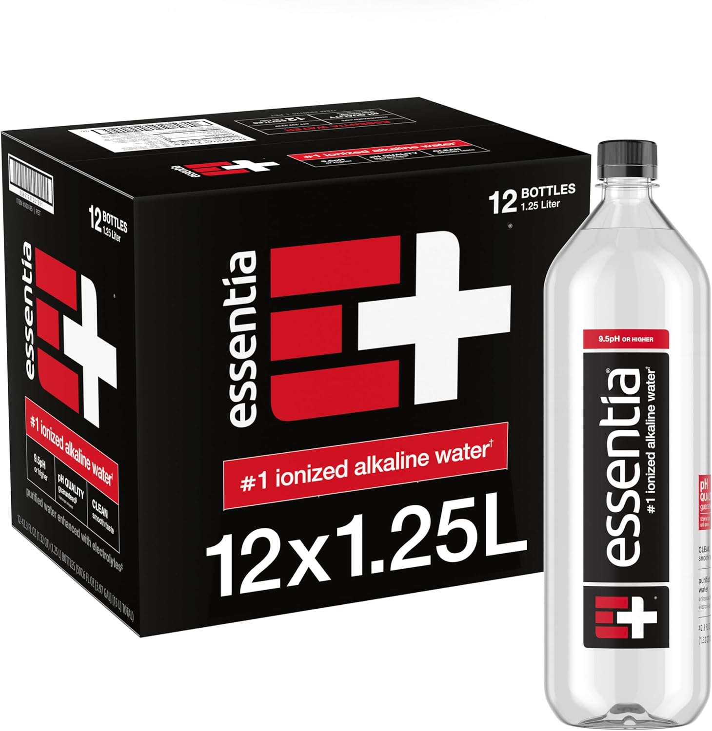 Essentia Water LLC , 99.9% Pure, Infused with Electrolytes for a Smooth Taste, pH 9.5 or Higher; Ionized Alkaline Water, Black, 42.3 Fl Oz (Pack of 12)